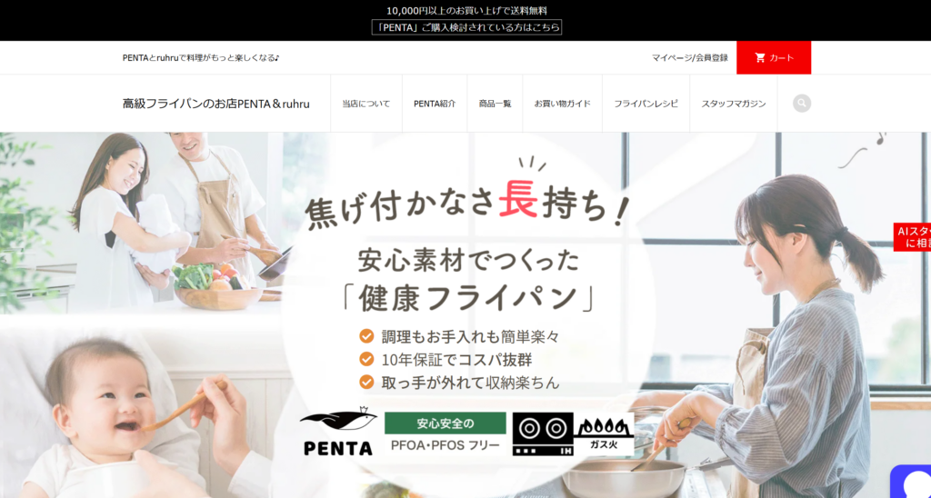 【PR】PENTA&ruhru 今回紹介するのは、今販売実績10年以上のショップが本気で作ったフライパンです♪ 「フライパンって結局どれも同じでしょ…」そう思っていませんか?実は、毎日使うフライパンこそ“質”で料理のストレスが激変します。 お客様のお声をもとに改良されたフライパンだからこそ、「使いやすさ」「耐久性」「満足感」のすべてにおいて、これまでの常識を覆す仕上がりになっています♪焦げ付きにくく、軽くて扱いやすく、長く使える。その結果、料理のストレスが減り、毎日のキッチン時間が快適に変わります。 実際使ってみてどう?簡単に特徴を解説します♪ ・コーティングが圧倒的に長持ち硬質アルマイト加工により、9,000回の耐久テストをクリア安いフライパンにありがちな「すぐ焦げ付く…」が起きにくいのが強みです。 ・ 驚くほど軽い従来モデルよりも圧倒的に軽い♪軽いので洗い物が楽、女性にも扱いやすく毎日使うものだからストレスなく使えるのが嬉しいですね。 ・取手が外せる(とっても便利♪)着脱式取手だから、コンパクト収納はもちろん、オーブン調理もOK!洗いやすくて便利です♪ ・デザインが可愛いフライパン、蓋、化粧箱に王様ペンギンのロゴ入り🐧キッチンに置いてもおしゃれなのはもちろん、大切な人への贈り物にも選ばれており、無料ラッピング・のし対応で、結婚祝い・母の日・誕生日などの贈り物にも最適です♪ 【10年保証で長く安心して使える】取手の破損などの物損は無料修理対応。さらに、コーティングが劣化した場合でも、10年以内なら何度でも5,500円(税込)+送料で新品交換が可能です。買い替えよりも圧倒的にお得に、長く使い続けられちゃいます♪さらに、購入後1年以内の初回申込みでは5,000円OFFクーポンもプレゼントされます。 長く安心して使えるだけでなく、万が一のときもサポートがしっかりしているフライパンです。使いやすさ・耐久性・保証のバランスが取れたフライパン、 「もうフライパン選びで失敗したくない」そう感じている方は、ぜひ一度チェックしてみてください♪ 詳細はこちらをクリック おすすめ商品 【フライパン2種5点セット】 ¥33,299(税込) 【PENTAの浅型深型2種と蓋付きセット販売】+ノベリティ(スポンジ)付き【Value set】通常37,840円/税込のところ12%OFF(33,299円/送料税込)焼き物に便利な浅型と、鍋代わりにも使える深型の2タイプ。使い勝手の良い24cmサイズは、2人暮らしはもちろん、買い替えや贈り物としても人気です♪ [新商品3.0]フライパン 28cm深型 【蓋セット ブラックノワール】 ¥25,080(税込) 日本・燕三条製の国産モデル。軽量化と最適設計により、より扱いやすく進化したフライパンは、毎日の料理を快適にしてくれます♪ フライパン 28cm浅型 【蓋セット アンティックゴールド】 ¥22,880(税込) 日本製の高品質モデル。焦げ付きにくく長持ちする新コーティングに加え、上品なカラーで使いやすさとデザイン性を両立しています♪ おすすめ情報 商材名 PENTA&ruhru運営者 T.A※当サイトはアフィリエイトプログラムを利用し宣伝目的で作成しております。